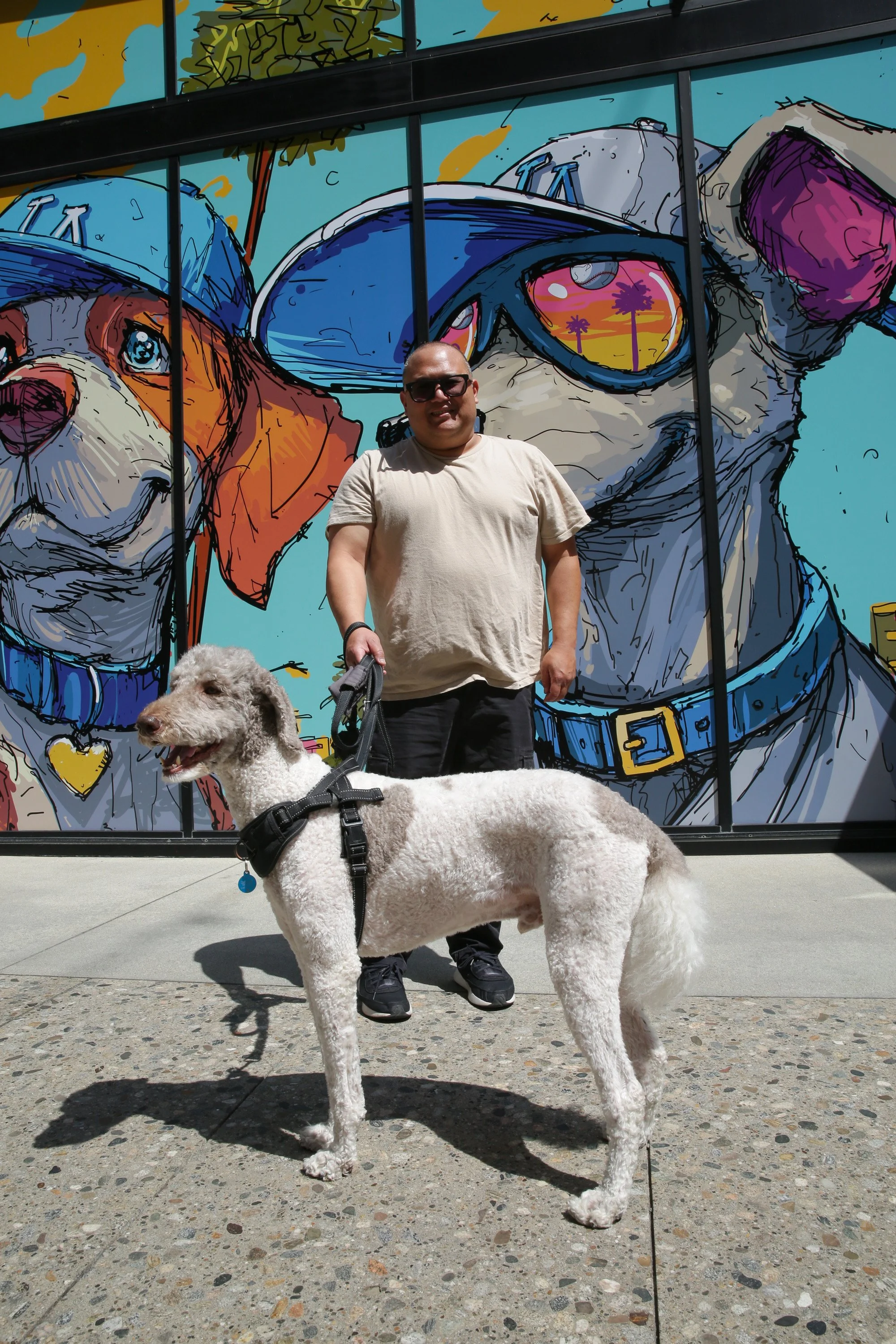 To unveil the artwork, they had a big adoption event as well. I’m such a dog person, and I love dogs so much. This project came at a difficult time for me, because I had just lost my dog of 14 years recently. I was able to put Freddy in the artwork, and it gave me a lot of joy to see him smiling. (he’s the one on the far left)