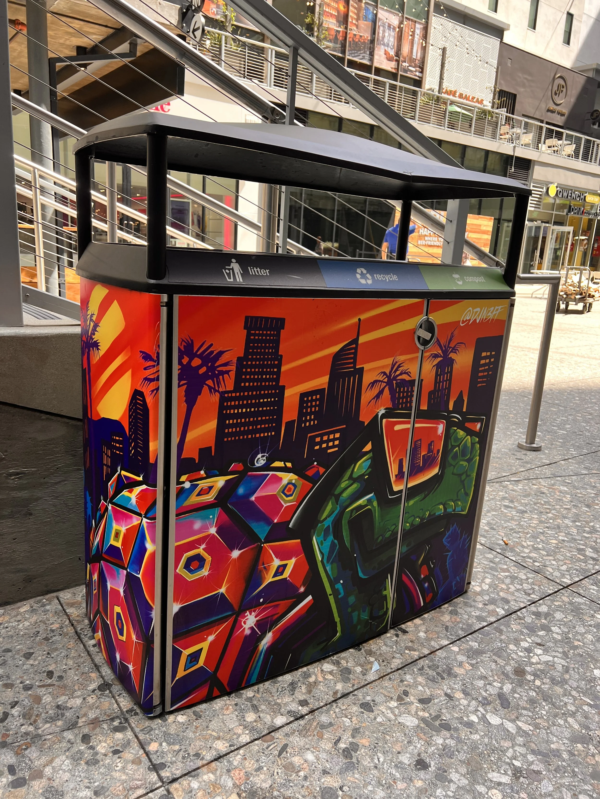 Another few projects that I collaborated with The Bloc on, were around Earth Day 2023. They asked for a cool illustration to wrap all of their recycling cans.