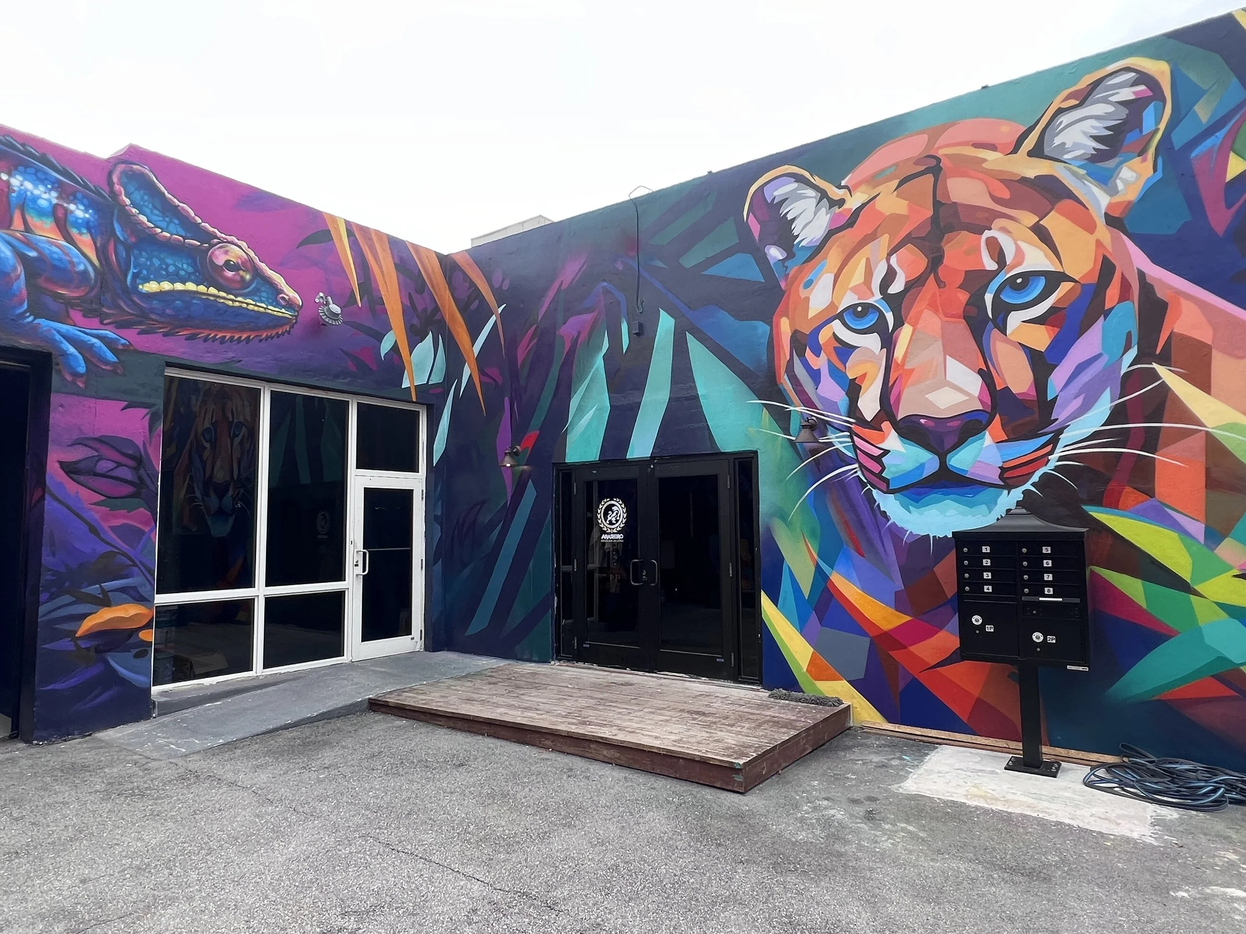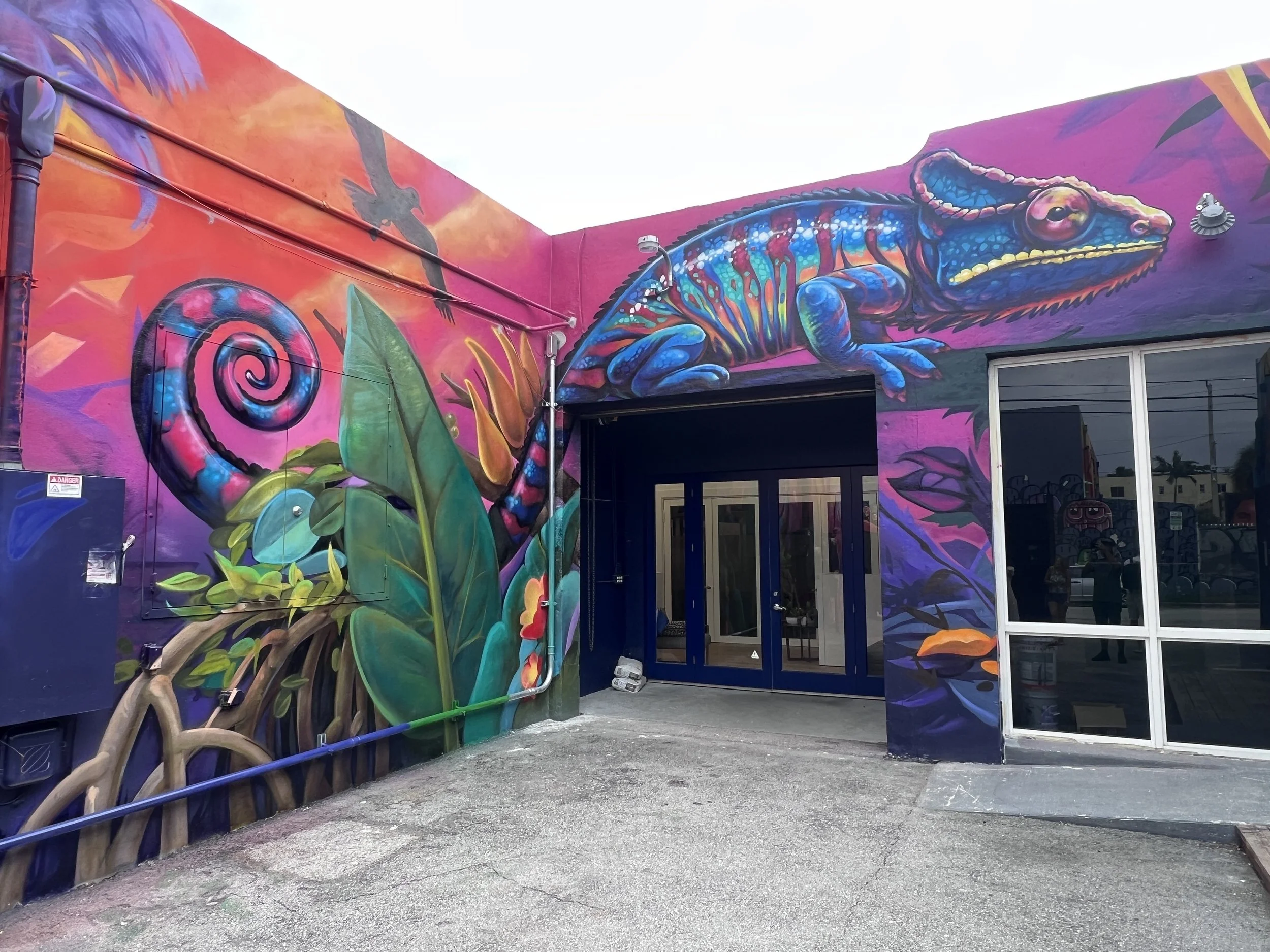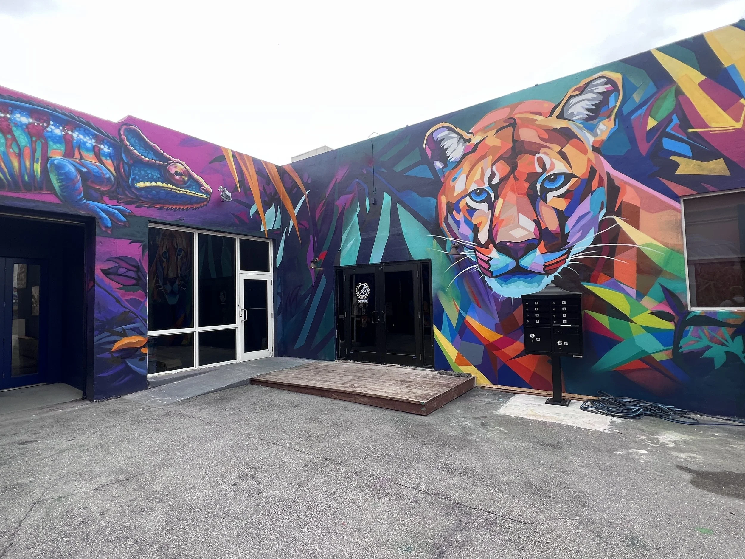 Working with the space, we wanted to create a few different scenes with their own subject as well as background that would seamlessly flow into the next adjacent wall. We chose animals that may be not your typical big hero animals. I was really stoked to get to do one of my chameleons and the Florida panther.