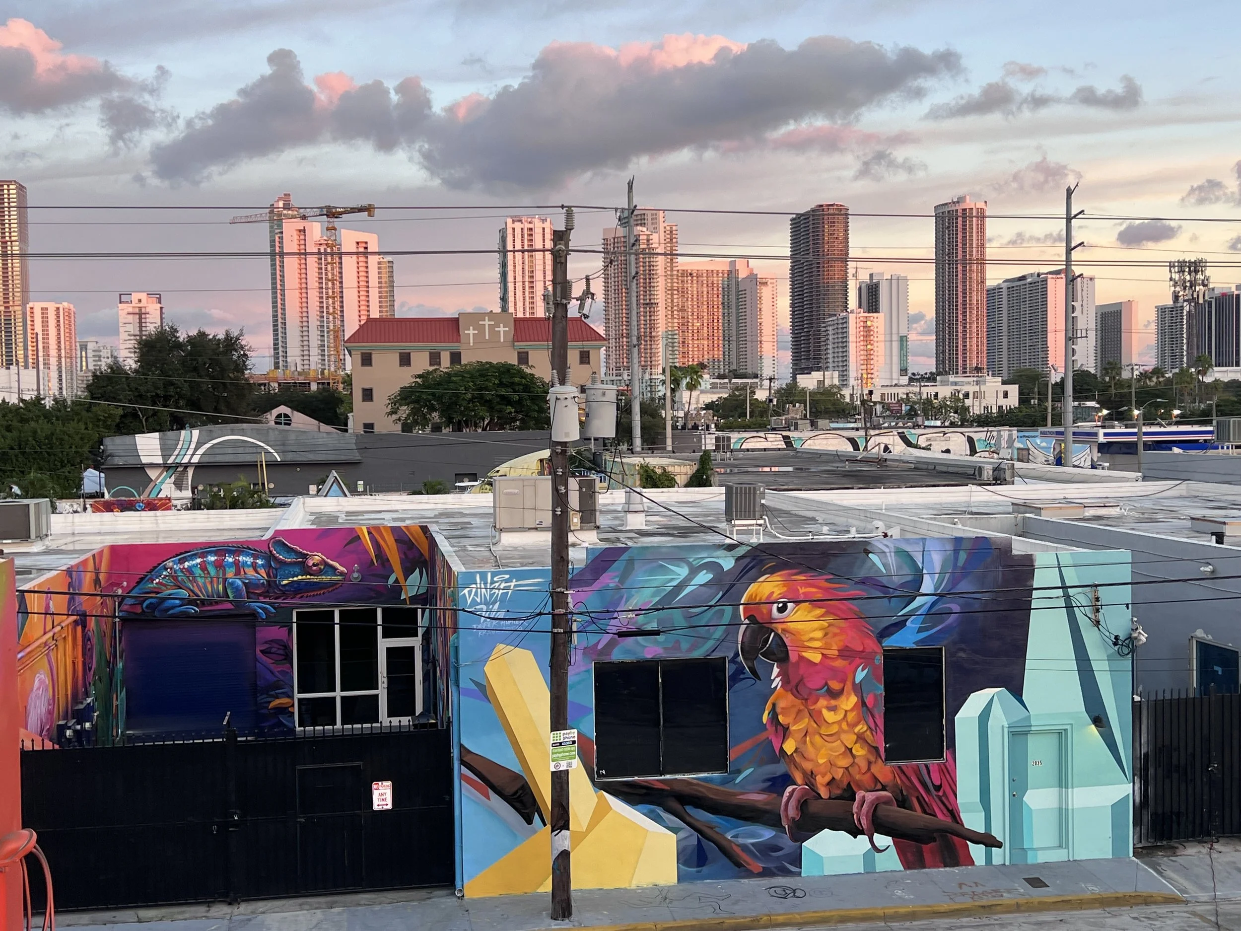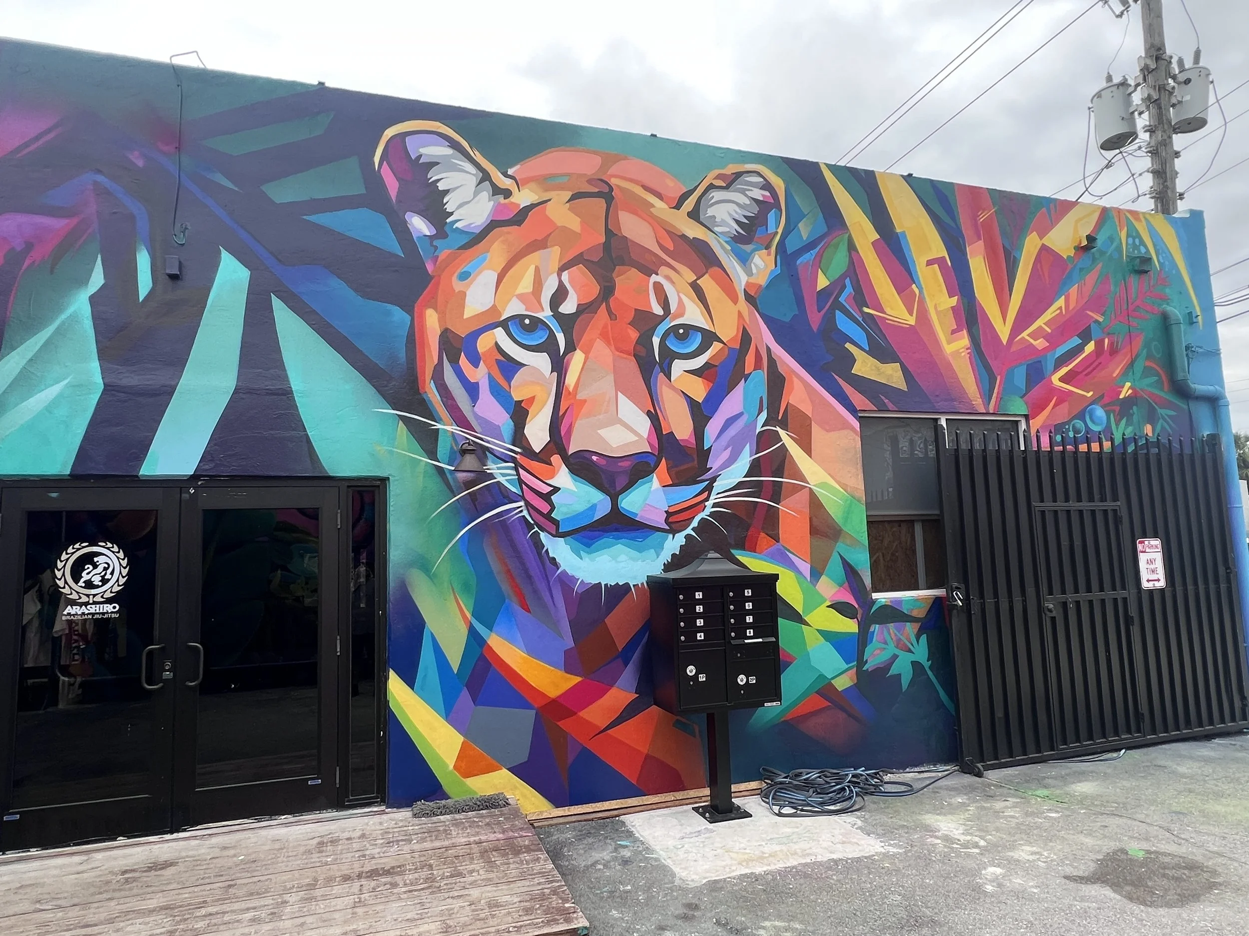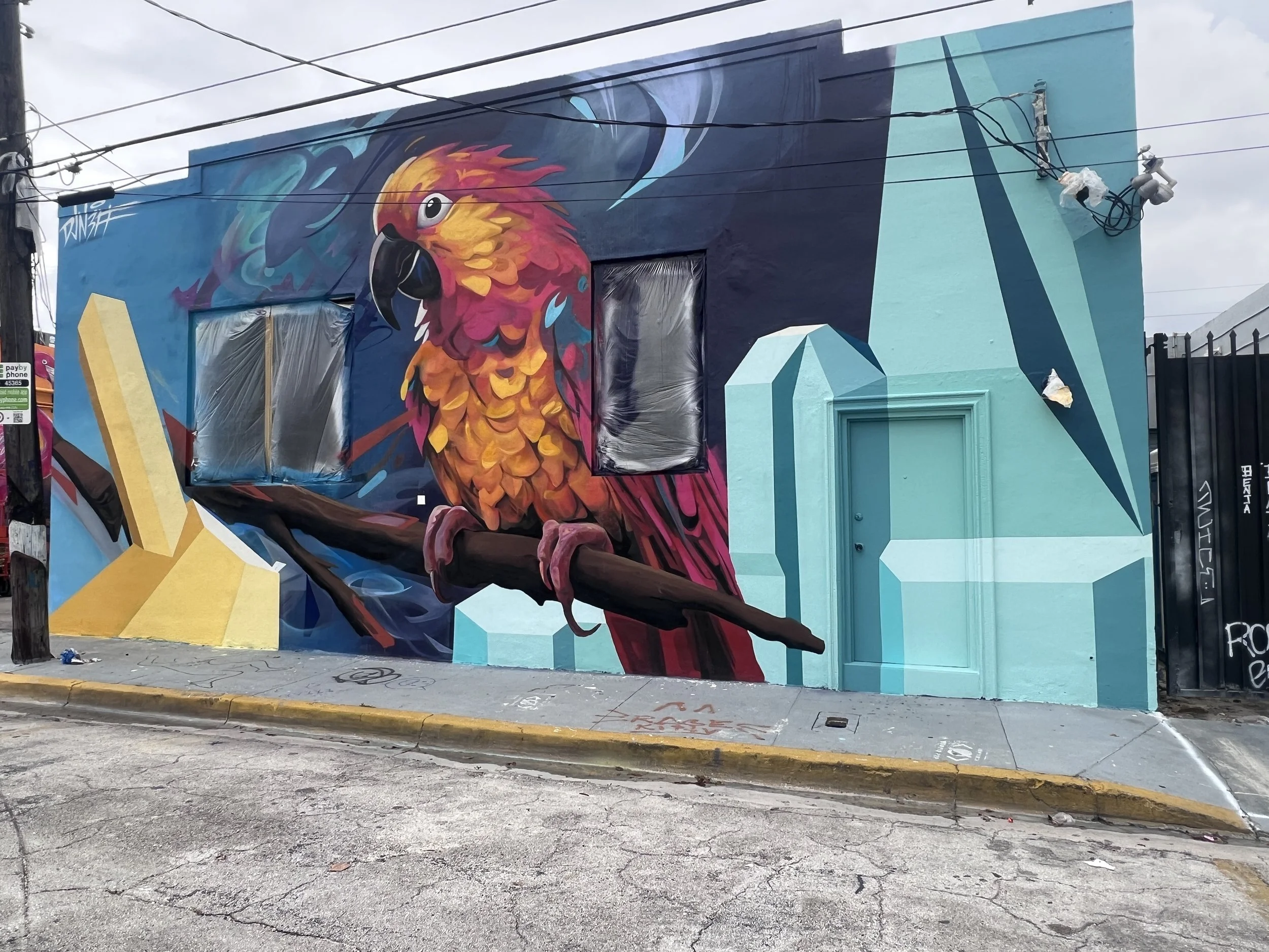 Ahhh, Miami. My hometown. What a treat this project was, especially getting to collaborate with two long time friends Krave and Tubs. The More Development Group decided to create a unifying mural theme for a series of buildings in the SOWY district of South Wynwood. In order to bring a lot of joyful color to the space, we decided on a combination of Florida wildlife with a geometric funky twist.